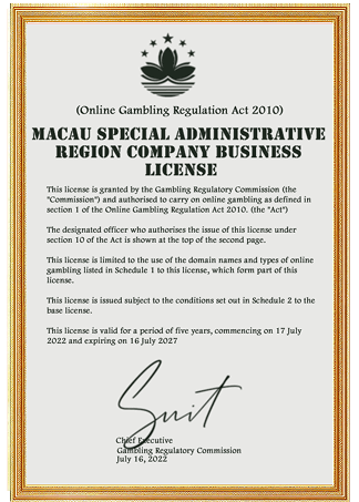 Lisensi perjudian online dari Pemerintah Dearah Adminisrtratif Khusus Makau